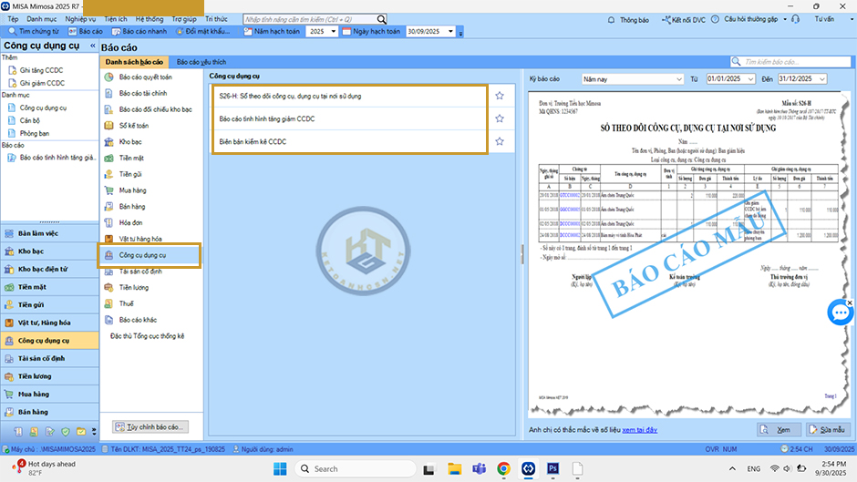 QUY TRÌNH THEO DÕI CCDC TRÊN PHẦN MỀM MISA MIMOSA OFFLINE