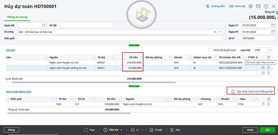 Để nhập số hủy dự toán, thực hiện theo hướng dẫn sau: