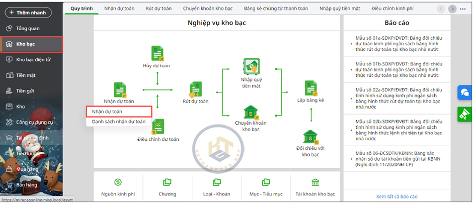 - Vào nghiệp vụ Kho bạc, chọn Nhận dự toán.