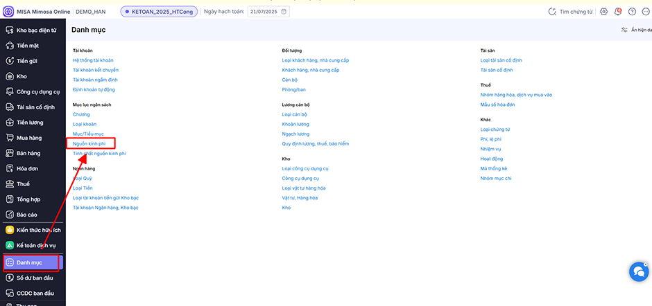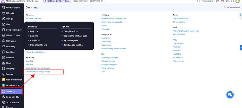 Vào danh mục/ tài khoản ngân hàng kho bạc