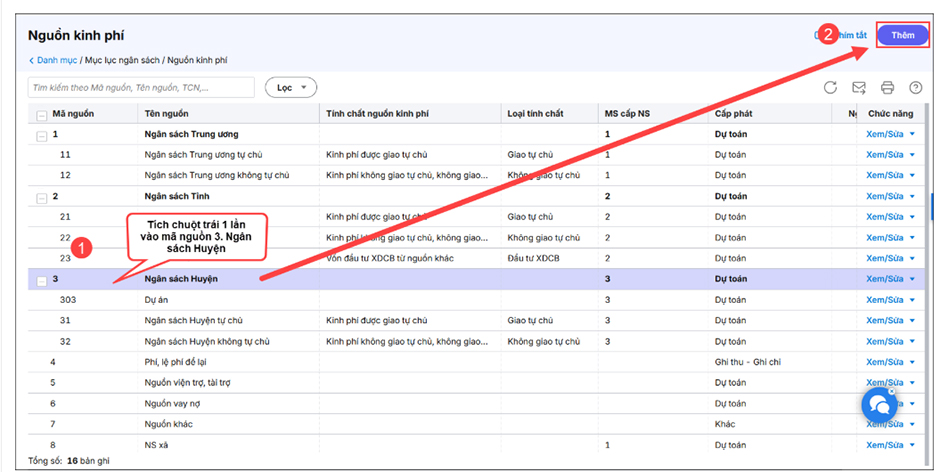 Tích chuột trái 1 lần vào Ngân sách Huyện (mã nguồn 3), nhấn Thêm
