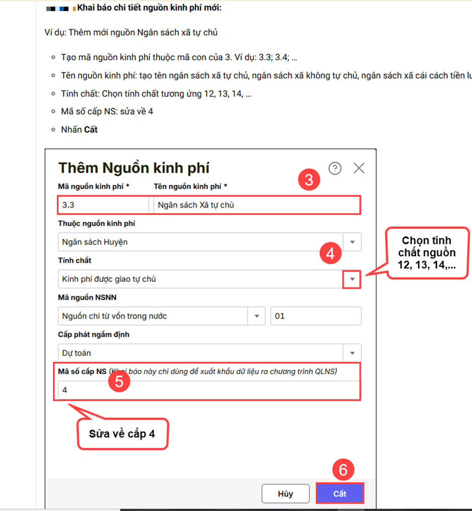 5- Bước 5: Hướng dẫn thêm nguồn kinh phí mới với mã Cấp 4