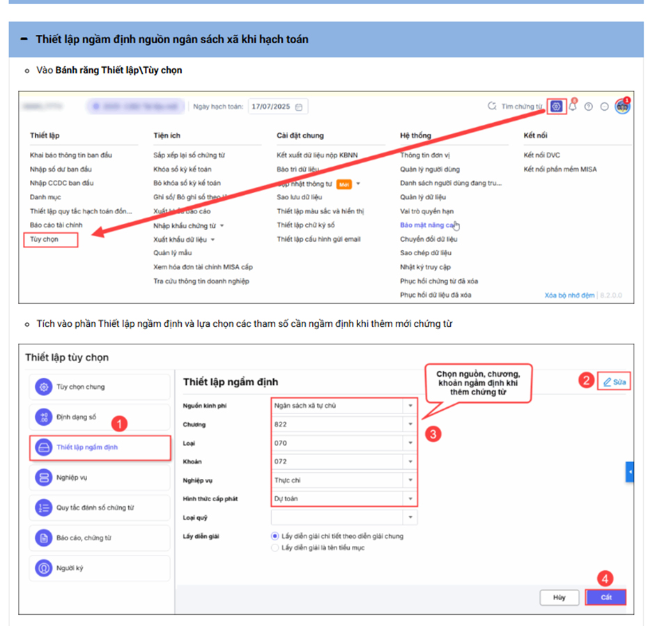 6 Bước 6-** Thay đổi thiết lập ngầm định trên chứng từ