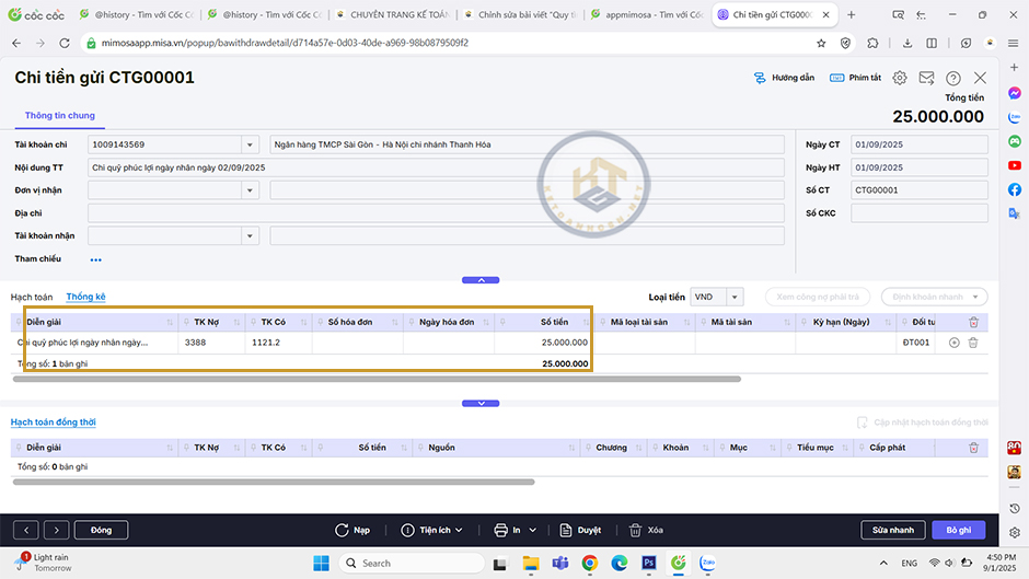 Phần mềm tự động hạch toán Nợ TK 1121/ Có TK 1351 – ĐT Có TK 008222
