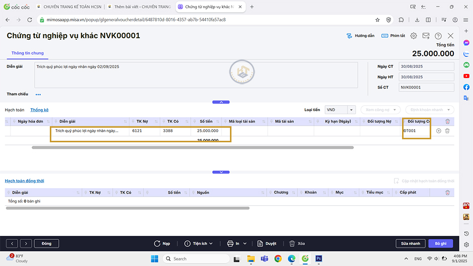 Vào phân hệ Tổng hợp\Chứng từ nghiệp vụ khác\Chứng từ nghiệp vụ khác