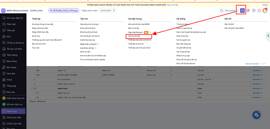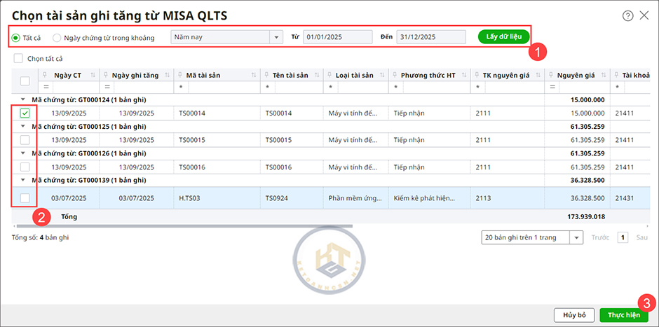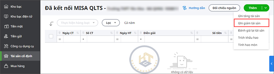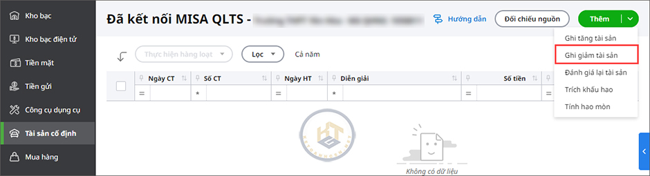 Bước 2: Lấy chứng ghi giảm từ phần mềm MISA QLTS về phần mềm MISA Mimosa Online