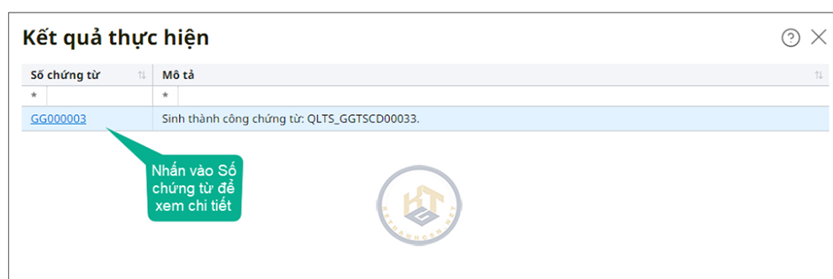 - Nhấn vào Số chứng từ để xem chi tiết chứng từ ghi giảm TSCĐ từ MISA QLTS hoặc nhấn Kết thúc để trở về màn hình danh sách chứng từ.