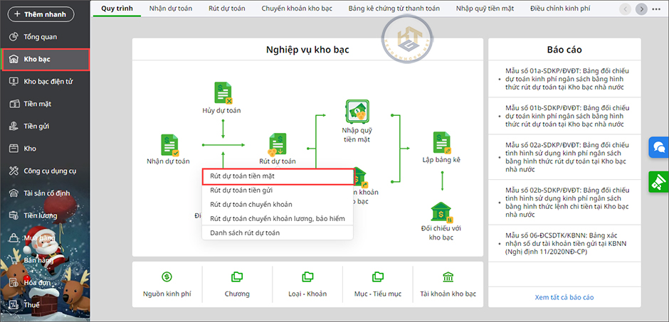 - Rút dự toán nhập quỹ tiền mặt